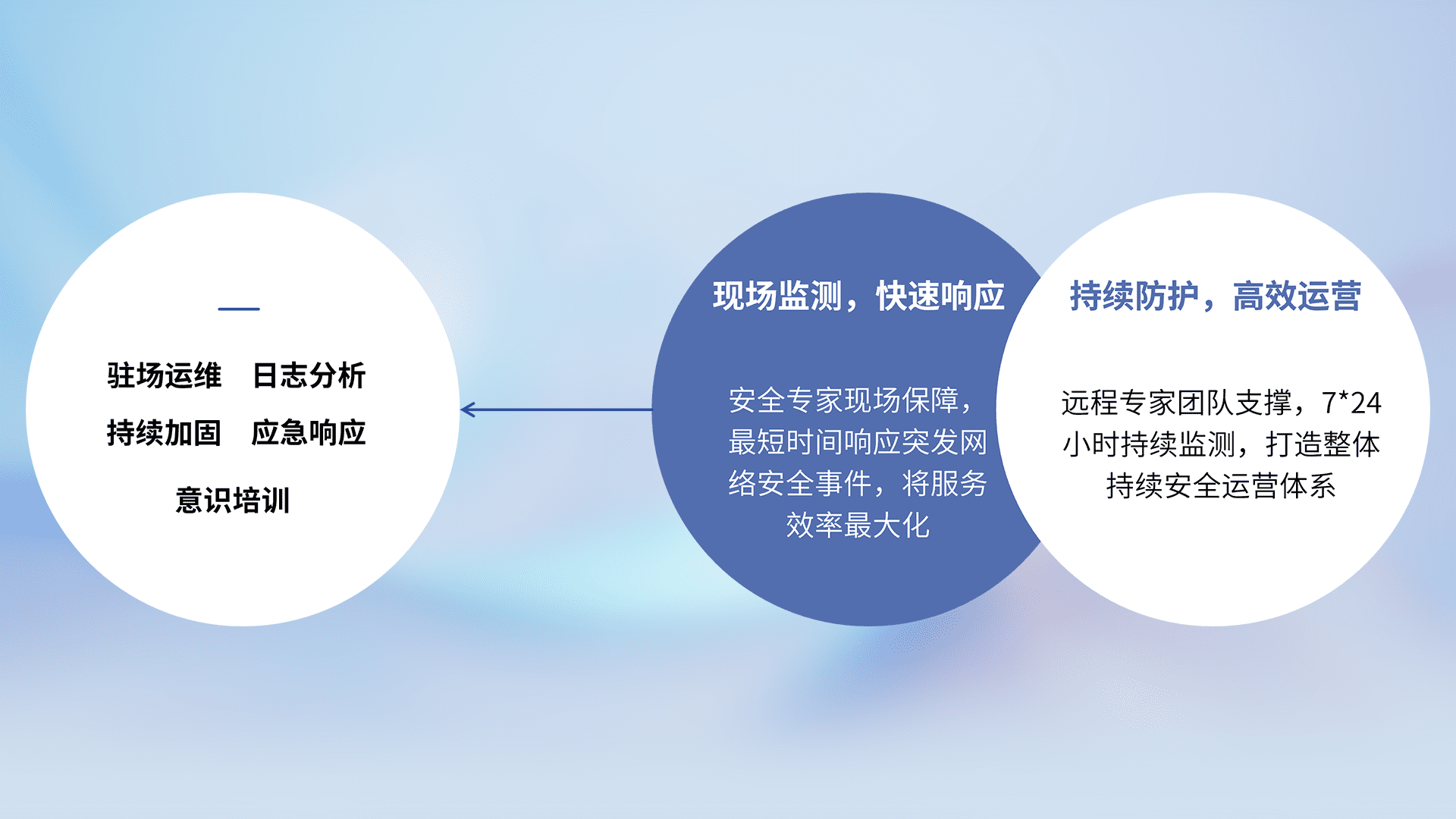 7X24小时持续监测安全事件,保持安全策略有效性,降低资产脆弱性风险,,,,精准拦截黑客攻击,,,减少被黑客利用的机会,,,第一时间遏制,,,降低损失。。。。